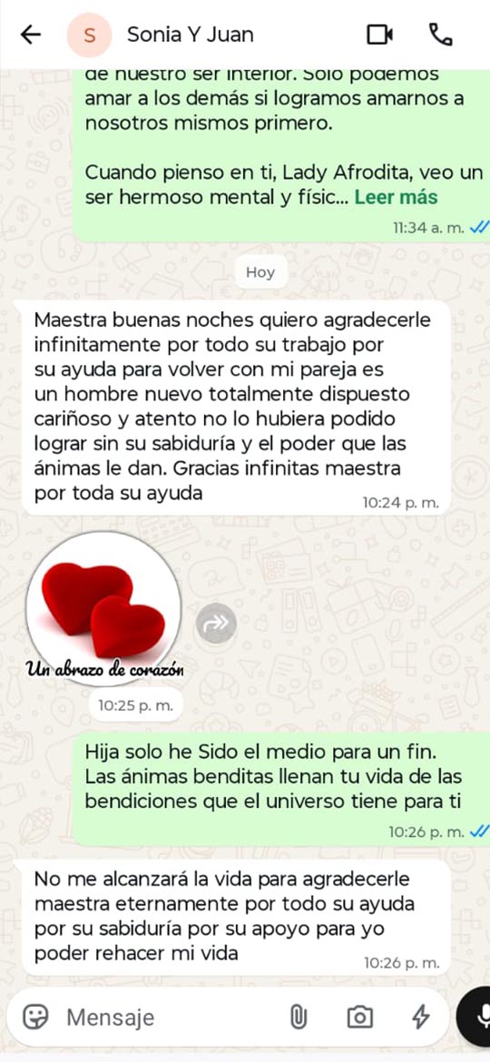 Bienvenid@ a mi espacio espiritual Soy guía esotérica con amplia experiencia en rituales y amarres de amor. Mi propósito es ayudarte a recuperar, fortalecer y atraer el amor verdadero a tu vida.